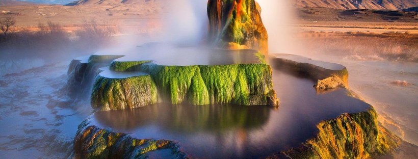 Considerado una de las formaciones geológicas más fotogénicas del mundo, consiste en un voluminoso montículo multicolor en formación de terrazas del que emanan varios chorros vaporosos. Está situado en el rancho Fly, una propiedad privada del desierto Black Rock en Nevada (Estados Unidos).